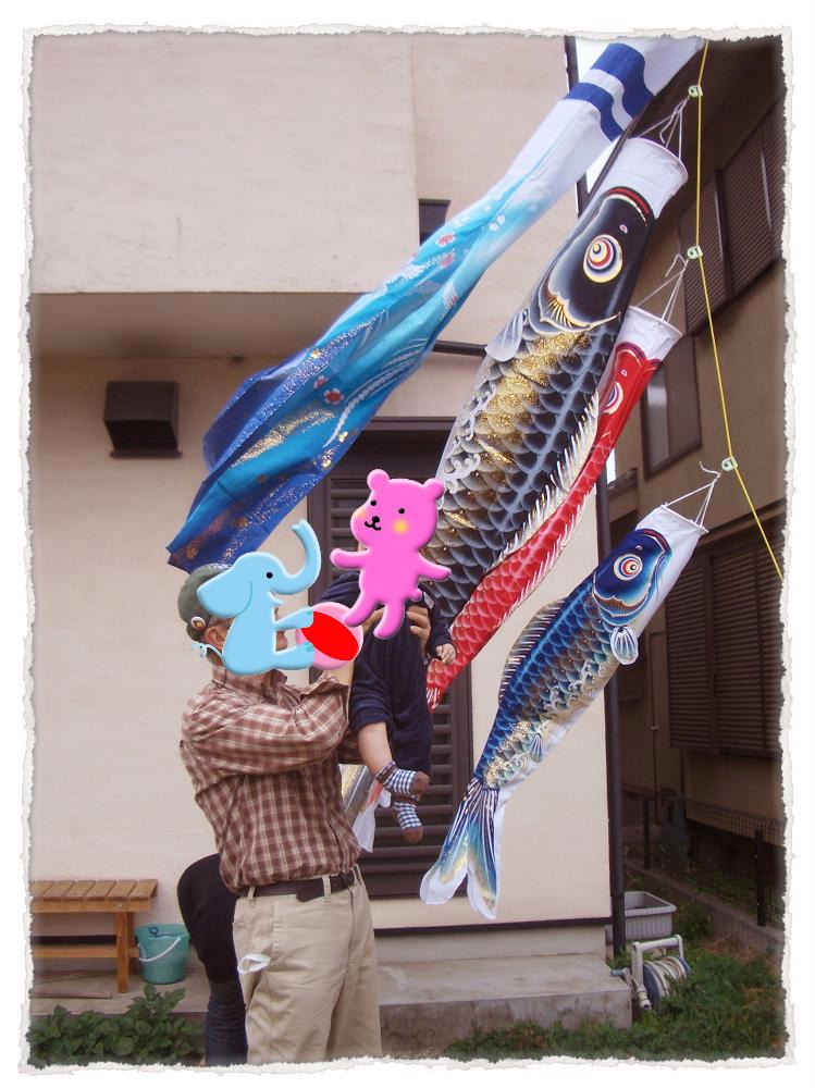 ちなみにshinの手前の小さな鯉のぼりは、福岡の義兄夫婦がcafeでみつけてかわいかったから…と送ってきてくれた、木製の立体パズル鯉のぼりです