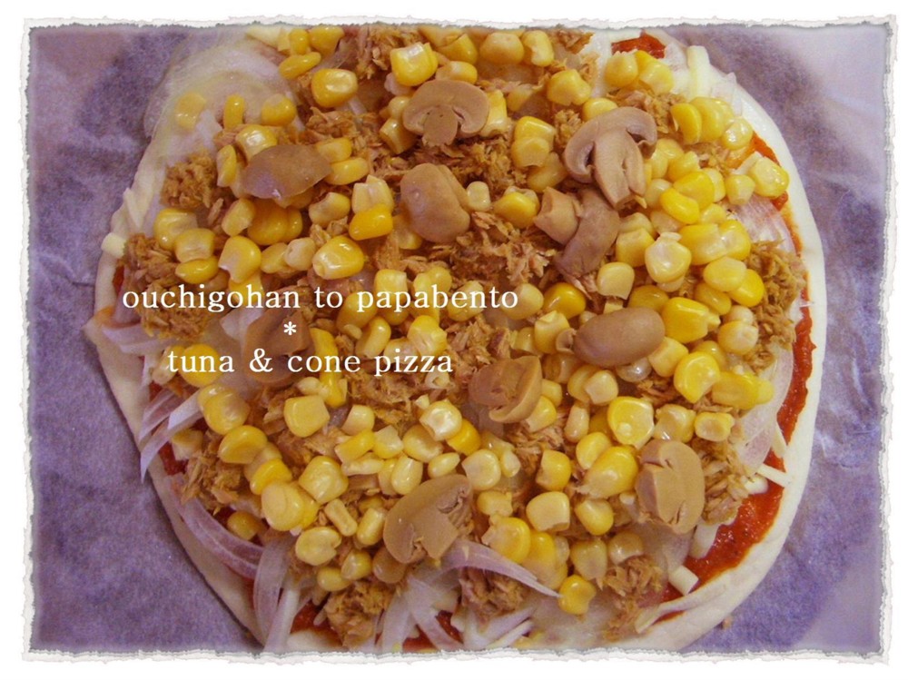 2枚目はこのツナコーン。タマネギとマッシュルームも載ってます。やっぱりピザソース。姪っ子ちゃんはコーンが大好きだそうで、小さなおててでコーンをつまんではパクパクしてました