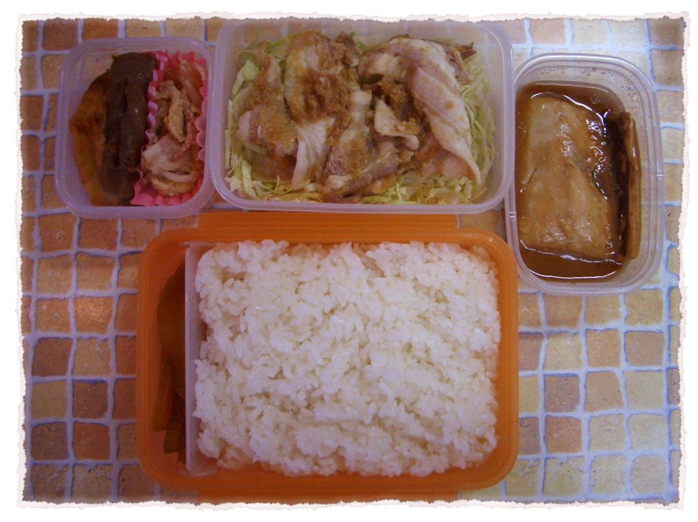 ダーさまは結構何でもごはんに乗っける人なので、豚と鯖味噌は別タッパーで、自由に乗っけられるようにしてあります。