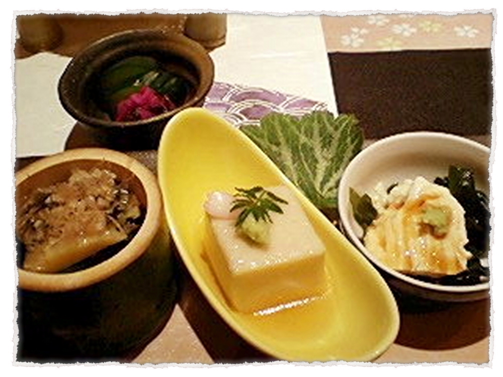 わたしが頼んだ「湯葉衣カツ膳」の前菜3品